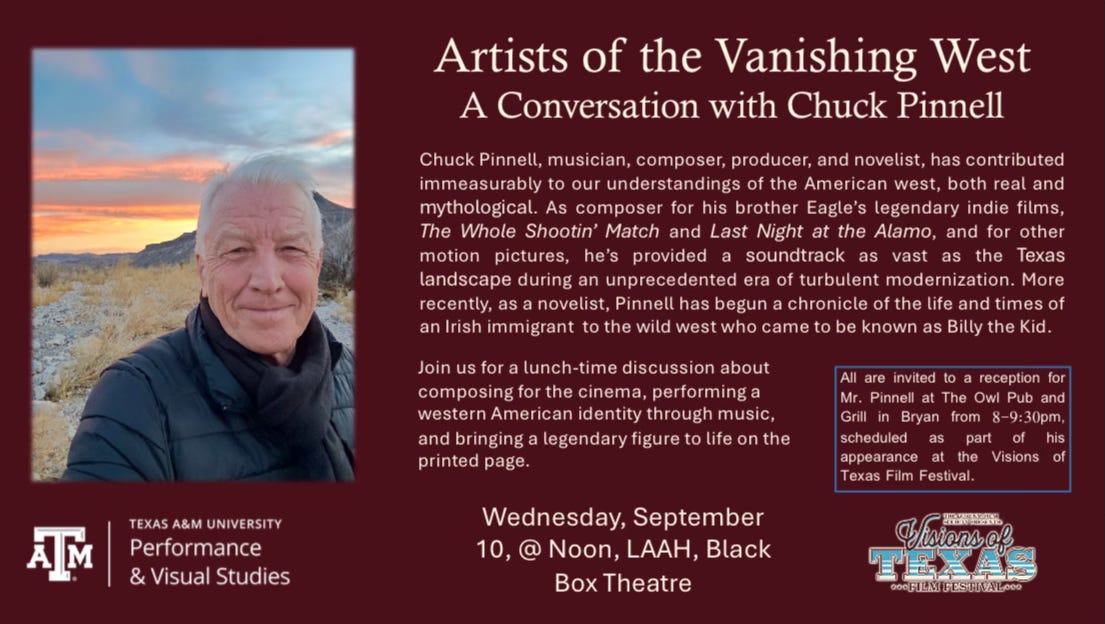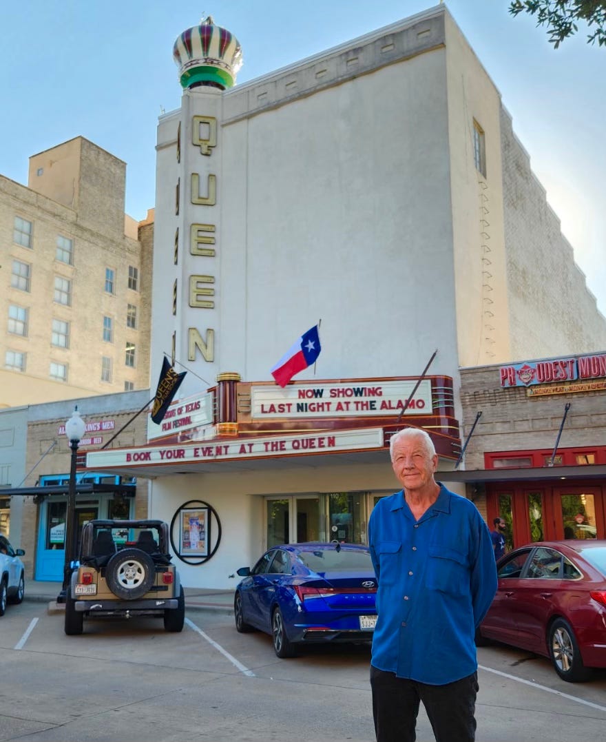 My brother Eagle Pennell and I grew up in College Station, home to Texas A&M University, which is now also home to a vibrant liberal arts school. The department is staffed with brilliant scholars—and one of their many innovations is to help sponsor a burgeoning local film festival—Visions of Texas. I was invited to the 2025 festival for a conversation with Dan Humphrey, Professor of Film and Media Studies, and to introduce Eagle’s indie classic Last Night at the Alamo at the historic Queen Theater—great honors both. And lots of fun.